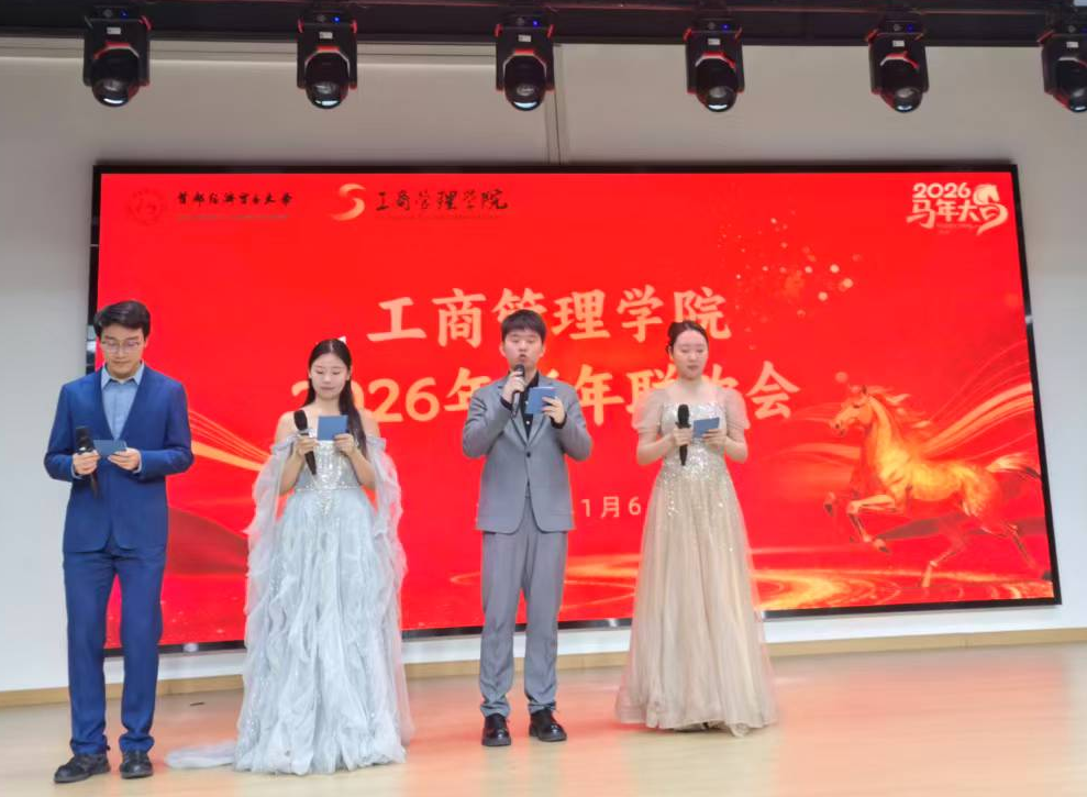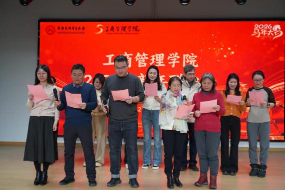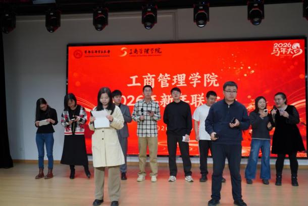 跃马迎春启新程,骏程万里谱华章。2026年1月6日下午,工商管理学院隆重举办2026年新年联欢会。学院领导班子与全体教职员工欢聚一堂,在温馨热烈的氛围中共迎马年新春,共叙情谊、共话发展。联欢会上,学院全体教职工热情参与,学院分工会和各系(部)精心策划、用心编排,节目形式多样、内容精彩纷呈,充分展现了工商管理学院全体教职工昂扬向上的精神风貌与多才多艺的风采。整场活动高潮迭起、掌声不断,在欢声笑语中为拼搏奋进的2025年画上圆满句号。站在新的起点上,全院上下将以马年为新征程的起跑线,凝心聚力、奋楫扬帆,共同开启2026年高质量发展的崭新篇章。