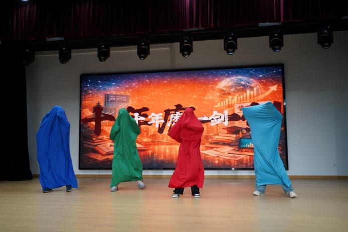 随后登场的舞蹈《爱如火(科研2026版)》由侯楠、肖旭、杨娜、张帅四位老师联袂演绎。节目以富有张力的舞蹈语言,巧妙融入科研主题元素,生动诠释了教师们对科研事业的执着追求与满腔热忱,展现了工商管理学院科研团队敢闯敢拼、锐意进取的精神状态。