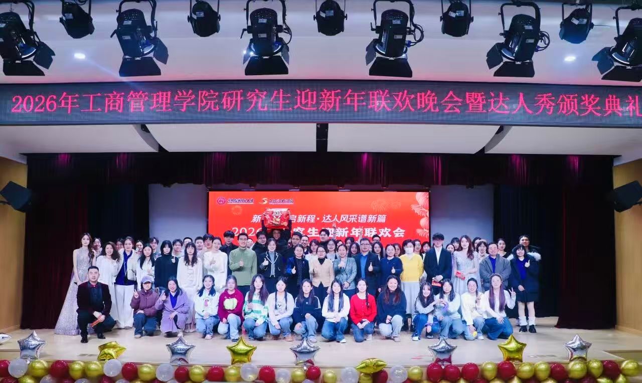 岁末冬深迎新禧,青春风华聚工商。12月17日晚,工商管理学院2026年研究生迎新年联欢会暨达人秀颁奖典礼在大学生活动中心109璀璨启幕。