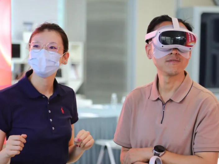 在讲解员的引领下,李云鹏教授等人实地参观了惠民演播厅、党建文化数字展厅、新时代文化惠民云播平台;在国际会客厅,亲身体验全息录影棚、赛博全息数字人等高新技术;现场观摩了LINKING元宇宙数智场景平台、党建云视窗、裸眼3D屏等。随后听取企业汇报片,通过佩戴定制版VR眼镜,初步了解临空元宇宙云产业园区建设情况。