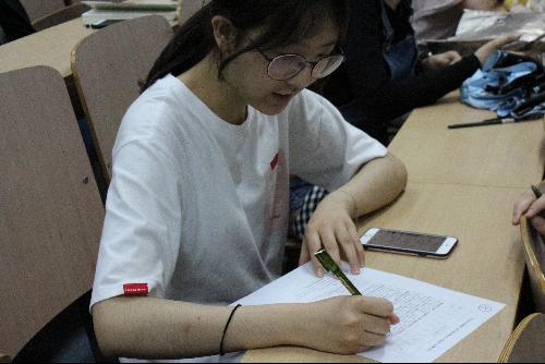 首先是“欢乐抢位赛”环节。本环节通过线上竞答的方式,根据选手们对于五四运动相关知识的掌握程度,选出得分前七名的同学作为队长,带领全队参与后续环节。通过线上竞答的方式,调动了全场同学的参与积极性,现场气氛活跃热烈。在组队完毕后,我们进行了“五四知识大模考”环节。每个小组各有一份试卷,题目涵盖党史、团史、时事热点、校园生活等多个方面内容,比拼各组的答题速度及正确率。同学们在试卷传递的过程中,积极讨论,互相帮助,最终有五队选手脱颖而出。