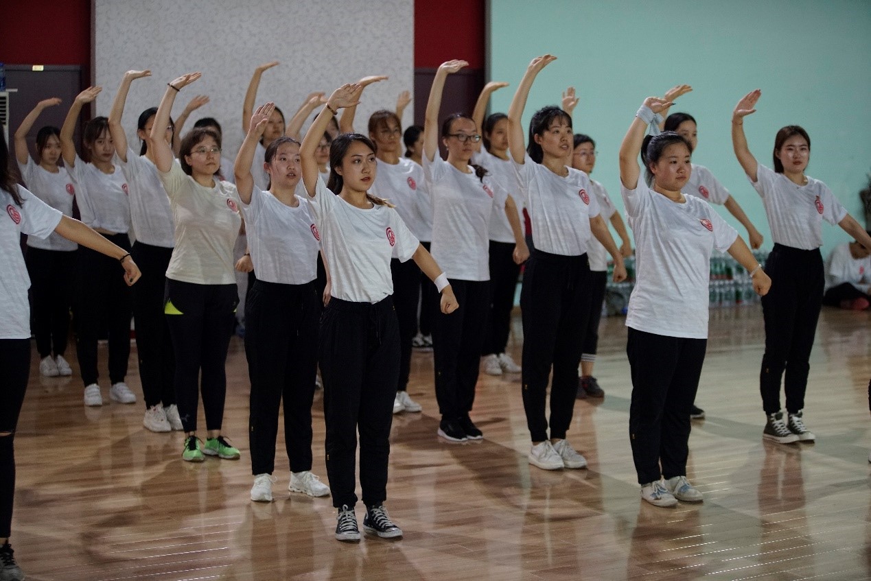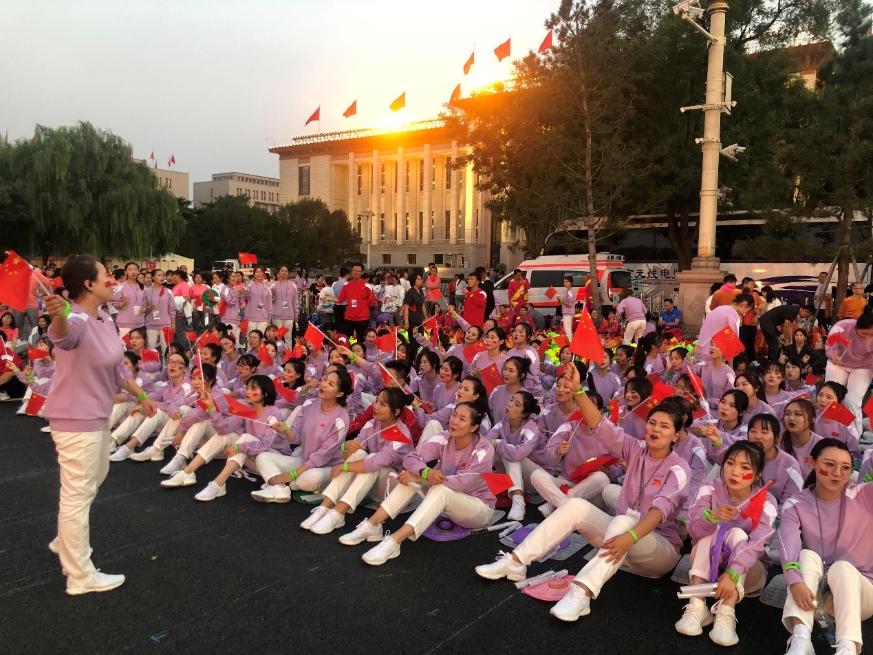 自六月份以来,经过报名、面试、政审等多环节严格考察,最终首都经济贸易大学工商管理学院12师生确定参与国庆联欢,承接“鱼水情深”区块全部演出。68天,136个日夜,群众联欢共经历校内训练8次,区级合练10次,市级综合合练4次。手持荧光棒,脸贴小红旗,蹲起上千回,击掌过万次。变化道具8种,人均负重10斤,完成舞蹈12支。在气膜馆、陆军装甲兵学院、阅兵村和天安门广场上,处处都留下了舞动的汗水与身影。期间,我院全体参演师生顶高温、踏酷暑、冒暴雨,所学舞蹈面临无数次的改动与调整,但是大家丝毫不曾抱怨与懈怠,通过在校舞蹈学习和区块整体合练,全体师生始终目标一致,两个多月的相伴相知也让彼此间结下了深厚的友谊,也为最终的华丽绽放奠定基础。