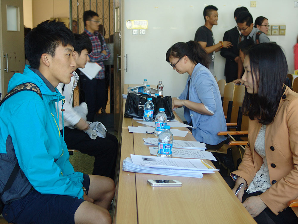 宣讲结束后,学生依据自己的喜好和选择,到各企业单独招聘的教室投递简历,并等待面试。慎思楼