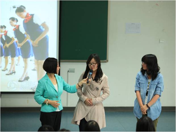 蔡红在两个小时的讲座中不仅使同学们深刻意识到了商务礼仪的重要性,也初步掌握了各项商务礼仪规范。