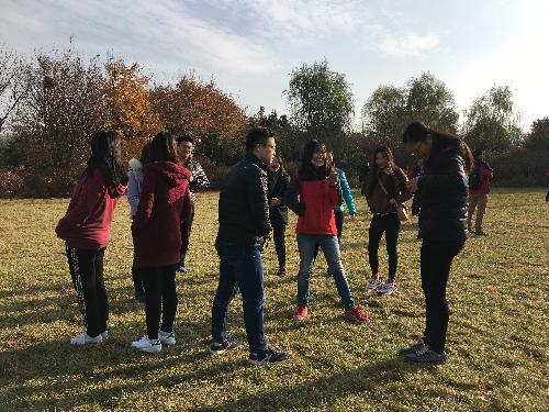 活动在一片欢声笑语中开始,除了裁判和观察员,其他同学结成了两组,第一轮游戏环节为“信息传递”,每组五个同学。由第一位同学按照所得信息进行比划,接着进行传递,前面同学传递时其他同学要背过去不能观察,最终由最后一名同学说出答案。两组同学都表演的生动有趣,大家团结配合,最后同学们也很快猜出来正确答案,充分展现了大家的团队合作力。第二个游戏环节,裁判分别给了每组5个不同的图片,每组需要找到五个景点集体合照,同时上轮游戏胜利的一组,可享有一次提问的机会。在激烈的团队讨论之后,两组同学整装待发。整个游戏持续了两个小时,同学们众志成城、团结一致,急中生智寻找图片中的五个景点,最终完成任务,顺利归来。两组同学一起交流了彼此在途中的经验与心得,主要是询问路人,选对方向、细心同时要有一定的方向感,最重要的还是团队之间的相互鼓励和搀扶。虽然整个活动下来大家身体都有些许疲倦,但同学们心理依旧热情满满,收获良多。
