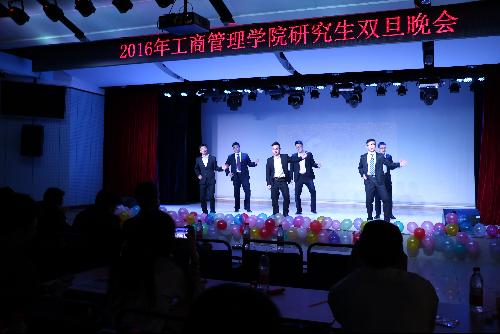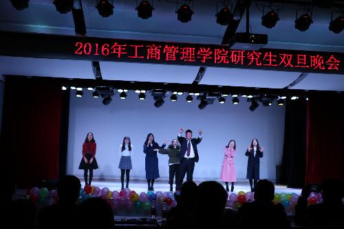 轻快的舞蹈过后,一首诗朗诵让大家的心归于平静,回忆起青春的点点滴滴。接下来,文体部的古装小品《甄嬛后传》搞笑连连,让人捧腹大笑。然后歌曲加手语的组合让人在严冬中感受到浓浓的暖意。压轴的群舞性感火辣,点燃全场,将晚会推向高潮。每个节目都展现着工商学子的青春活力与闪亮才华,穿插其中的抽奖环节更是得到了同学们的踊跃参与,让整场联欢会变得趣味无穷。最后,徐炜上台做了总结,向联欢会成功举办表示祝贺,也建议同学们多举办类似的活动,跟我院MBA学生多沟通交流,共同进步,同时代表我院领导给同学们带来了美好的新年祝福。