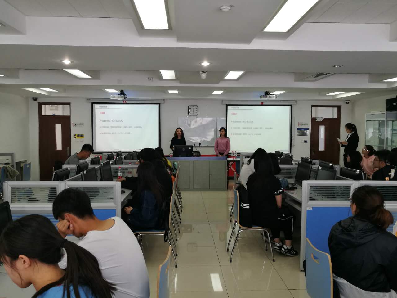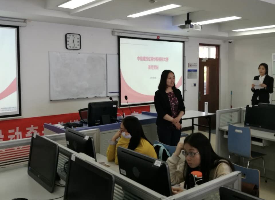 主持人宣布本次“股东奇迹”模拟炒股大赛开幕之后,来自中信建投证券的嘉宾李隽婕老师开始对选手进行培训,李老师首先从模拟盘的使用入手向大家介绍模拟炒股的操作方法,同学们认真听取并一起下载软件进行同步操作。