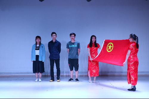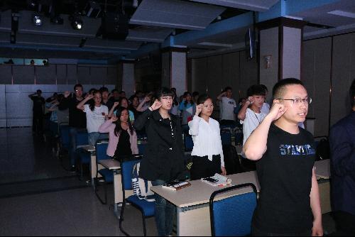 在开场前,同学们通过一段生动有趣的卡通视频了解了五四青年节对于当代青年的意义。“青春言”环节中,全体人员面向团旗,举起右拳,重温入团誓词:志愿加入中国共产主义青年团,坚决拥护中国共产党的领导,遵守团的章程,执行团的决议,履行团的义务,严守团的纪律,勤奋学习,积极工作,吃苦在前,享受在后,为共产主义事业而奋斗!