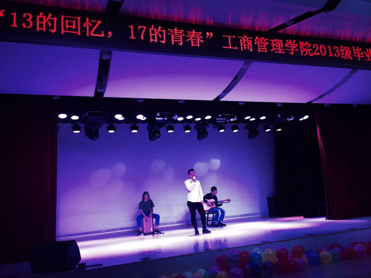 5月11日下午14点30分,我院在大学生活动中心举办了“13的回忆 17的青春”2013级本科生毕业晚会。工商管理学院院长柳学信、副院长关鑫、党委副书记李娟婷、2013级工商管理班班主任滕秀杰、2013级工商管理一班、二班班主任孙喜、2013级市场营销国际班班主任张松波、2013级物流管理班班主任孔海宁、2013级电子商务班班主任陆文婷、分团委书记潘镜宇、学生专职辅导员王璐老师以及2013级全体毕业生共同参加了此次活动。