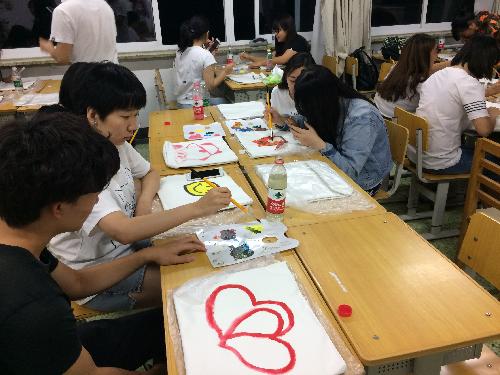晚上8点左右,很多同学满怀热情提前来到了教室,并用自己收集的塑料瓶换取了空白环保袋。随后蓝丝带志愿者们将30名同学分为10个小组进行绘制,同学们纷纷拿起画笔和颜料准备大显身手。有的同学拿出自己提前准备好的图案,有的同学则即兴创作。一个个空白的环保袋很快就在同学们的妙笔下华丽变身。最后,大家兴高采烈地与自己亲手绘制的环保袋合影留念。
