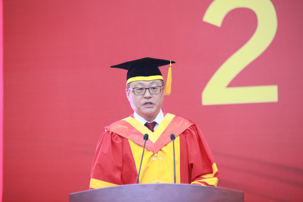 会计学院1996届毕业生、滴滴出行创始股东、链家地产首席财务官徐涛(金京虎老师指导的第一届毕业生)作为校友代表在典礼上做了《未来的你在未来等你》的主题致辞。他回顾自己的求学经历、职场经历,向毕业生们提出了三点建议:一是要坚持做难而正确的事情;二是要着眼未来、为自己的选择负责;三是要坚持学习,不断充实自我、提高自我。徐涛激励毕业生们:“你们是世界年轻的样子,要学会用炙热的目光、舍我其谁的勇气和胆大心细的态度,继续前行,勇往直前”。