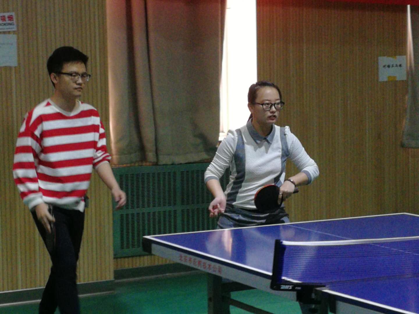 乒乓球比赛是以单局11分制,三局两胜的方式进行。比赛为男女混合双打,工商学院研一赵晓蕾与统计学院李靖怡组队代表工商管理学院对阵财税学院的两位选手。首局比赛,双方就打得异常激烈,比分紧咬,工商学院选手沉着应对,以两分的优势率先拿下开门红。第二局,双方交换场地,比赛伊始,对手便奋勇直追,保持领先,工商学院以微弱劣势惜败给对手。大比分战成1:1。最后一局,赵晓蕾与李靖怡调整好状态,一度领先,但对手同样发挥出色,反超了比分,将大比分改写成了2:1。比赛结束,双方选手均意犹未尽。尽管工商学院未能成功晋级乒乓球比赛的下一轮,但选手们努力不懈、奋力拼搏,他们顽强的体育精神感染了整个赛场,虽败犹荣。