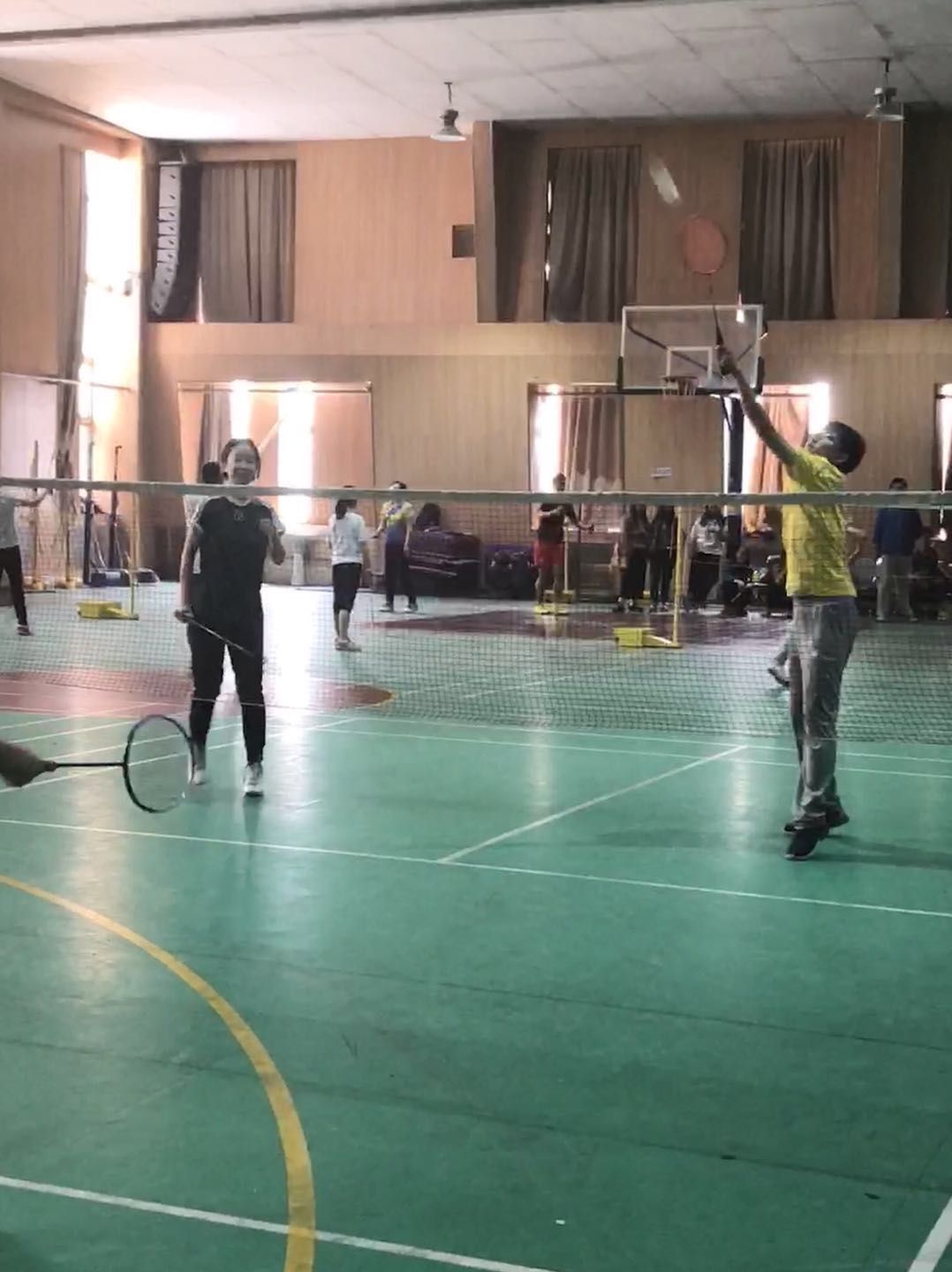 4月30日中午在羽毛球馆举行了羽毛球赛的第一场比赛。我院参赛队员迎战会计学院。比赛分为3场,首先是男子双打,然后是男女混合双打,最后是女子双打,比赛采取三局两胜制。