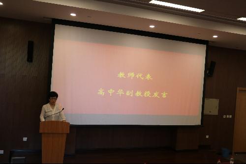 我院组织管理系教师高中华副教授代表导师发言。她祝贺研究生们从今天开始跃上人生旅途的更高平台,希望大家明确读研目的,提高学问素养与实践能力。研究需要定力,静下心来做研究对于老师和学生都是一种挑战,对于接下来如何做研究,她分享了个人的四点体会:掌握现代管理的方法体系,用系统研究代替主观直觉;尝试找到自己感兴趣的研究问题,兴趣是最好的老师;从学习知识的旧阶段进入到创造知识的新阶段;与导师建立良好的互动关系。