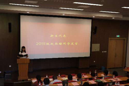 2018级硕士研究生赵思暄代表新生发言。她表示,工商管理学院是梦想起航的地方,研究生生活势必会成为大家人生的一个重要里程碑。研究生学习期间面临更多的机遇和挑战,应当更加独立自主而又富有创新意识,培养独立之人格,自由之思想,求学若渴,修身立德,成为一个有务实精神的理想主义者,有远大理想的务实主义者。她期待与学院共同成长,收获别样精彩,祝福学院广纳英才,桃李满天下。
