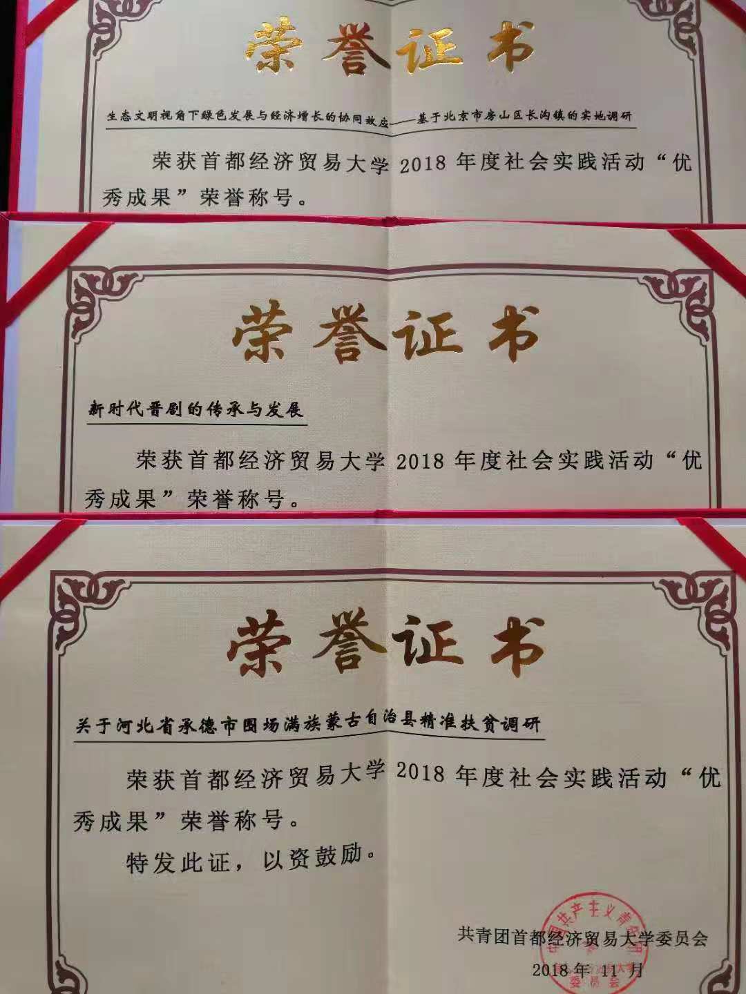 暑期社会实践开展之初,各年级本科生及研究生踊跃报名,最终有13支团队深入一线调研,破解社会难题。各团队在老师的指导下通力合作,均高质量地完成了实践项目。其中有4支队伍表现最为突出,“新时代晋剧的传承与发展”课题组、“生态文明视角下绿色发展与经济增长的协同效应——基于北京市房山区长沟镇的实地调研”课题组与“关于河北省承德市围场县精准扶贫调研”课题组凭借崭新的立意、明确的方向与扎实的调研,最终获得校级“社会实践活动优秀成果”奖。而“少数民族村落民风民俗及其对社会生活的影响”课题组凭借对民族风俗的深入跟踪与研究,展现了少数民族文化的特色文化征服了评委,最终获“最佳风采”奖。