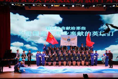 工商管理学院是第八个出场的学院,此次舞台剧以改革开放四十周年为时代背景,节目名称为《我爱祖国的蓝天》,以戏剧、合唱和舞蹈的形式,加以悠扬的笛音以及非常具有表现力的萨克斯,赞颂了祖国母亲那美丽的蓝天,并以此致敬保卫祖国蓝天的最可爱的人——军人。