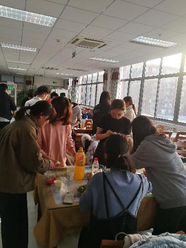 活动的内容包括三个部分:分组包饺子,有奖知识问答,同品饺子叙温情。本次活动,一共分了四个小组,食堂已经提前备好面和馅儿等工具,每个同学都积极地参与其中,分工明确,有揉面团的,有擀面皮的,有包饺子的,大家都各司其职。并且很多同学都是在现场学习,有的在网上搜着不同的包饺子方法,有的向同学请教如何包才能不破,有的发挥着想象力创造出新奇的饺子......四十分钟过去了,每个小组都包了两三盘饺子,并且由三位老师选出了最具创意奖,小组合作最好奖,饺子数量最多奖以最佳风采奖,每个获奖小组都收到了一份小礼物。接下来是知识问答环节,一共五道小题,采取抢答形式,抢答正确的同学会得到一份学院礼物,同学们都很踊跃的发言。通过知识问答活动,帮助同学们了解更多关于冬至日的传统文化。
