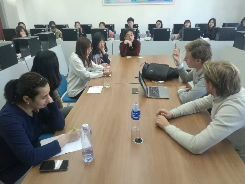 Filip、Viktor向同学们展示介绍了他们研究所得出斯堪的纳维亚面向中国游客进行目的地营销的模型,以捕获中国游客旅游的需求、帮助斯堪的纳维亚公司介入中国市场。Abdullaeva从研究理论、研究方法、理论结果、验证理论以及研究结论详尽地介绍了主题论文得出“一个国家对犯罪的高度认识对访问该国的意愿/意图有直接和消极的影响”的结果。之后,同学们与三位研究生就他们的研究成果以及主题相关的内容展开了深入的交流与分享。