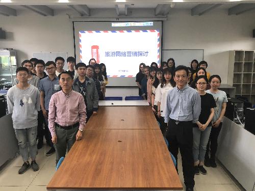 在第十一周(5月7日)与十二周(5月14日)的旅游信息化课上,2016级旅游管理班的同学们迎来了两位资深的一线企业经理人,他们与同学们分享及探讨旅游网络营销的现状与未来。第一周的课上请来的是中国国际旅行社总社有限公司,战略发展部的部长蔡恒先生,第二周的课上邀请的是来自中国东方航空集团有限公司华北营销中心的王皓汶先生。