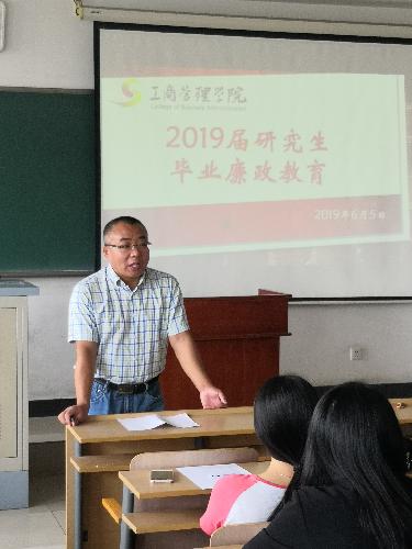 首先,学院副院长、党委纪检委员范合君对全体2019届研究生毕业生进行了廉政教育。
