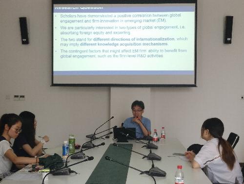 6月19日下午,工商管理研究工坊第53期在博远楼三号会议室成功举办。周江华副教授以其最新研究成果Foreign Equity, Exporting and Firm Innovation: An Emerging Market Perspective为题向我们分享了他近年来有关企业创新机制的研究。我院战略管理系主任张晗副教授主持本次活动,工商管理学院部分师生参加了此次讲座。