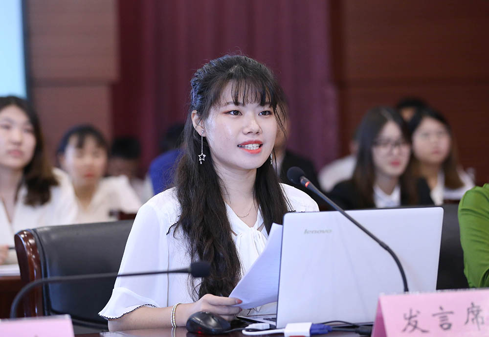 六名获奖学生代表依次进行发言。院长奖章获奖者代表杨璐瑜以“立身立学共出彩,砥砺前行再远航”为主题,从专业学习、科研实践、学生工作三个方面出发,分享了大学学习生活中的收获与感悟;“顾涛▪卓越商才”校友奖学金获得者吴兰以“奋斗的青春最美丽”“格物致知 明体达用”“因为热爱,所以坚持”“心怀天下,掷地有声”为关键词,讲述自己从迷茫到坚定这一过程中的心路历程;“公益实践”卓越奖获得者张帆带来了“优果鲜生”团队的创业故事,她总结自身在创业途中的失败教训,启迪在座各位学弟学妹勇于追梦;“社会工作”卓越奖获得者张曼玉从研究生会的内部建设和外部建设两个板块,分享研究生会工作;“卓越学风标兵”获得者黄子业提供了提高学习效率、适应大学教学模式的心得方法;“卓越学风班”获得者2017级市场营销国际班班长宋思琦带来班级成果展示,表示将会立足当下,怀有一颗赤子之心,持续前行。