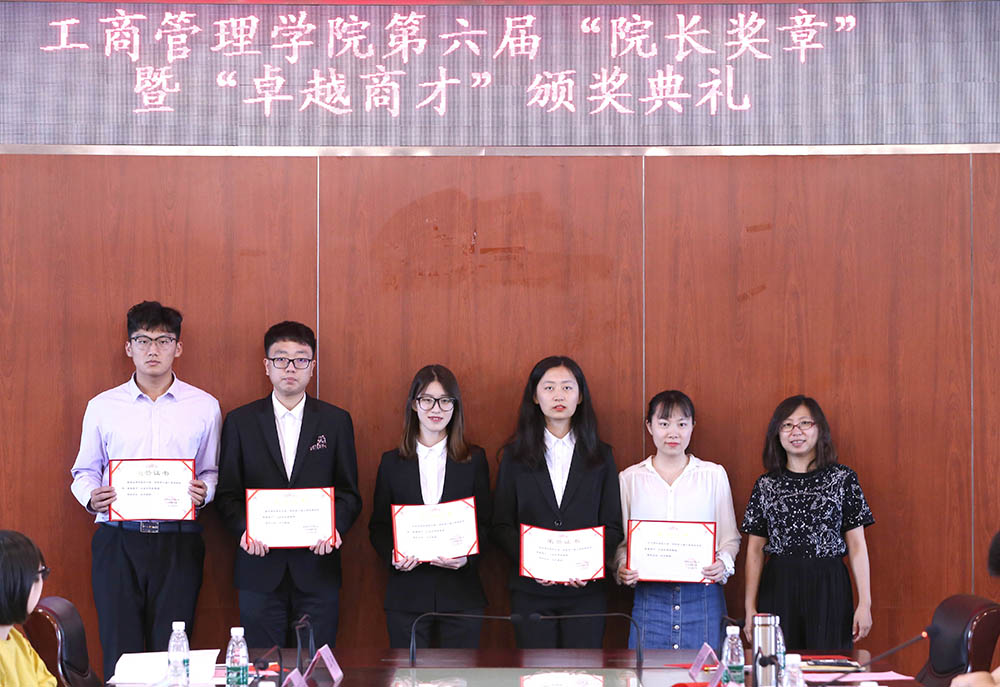 典礼上对“卓越商才”单项奖、集体奖以及校友奖学金获奖者进行表彰。学生工作部部长马力,图书馆馆长张学平,对外联络合作处处长兼校友会秘书长赵喜玲,唐山学院宣传统战部部长(挂职党委宣传部副部长)杜宇,研究生工作部副部长孟毅芳,工商管理学院党委书记金京虎,工商管理学院副院长范合君、徐炜分别为“科研创新”“公益实践”“文体竞赛”“社会工作”卓越奖,卓越学风标兵、卓越学风班、卓越班集体以及“顾涛▪卓越商才”校友奖学金的获奖个人和集体进行了颁奖。