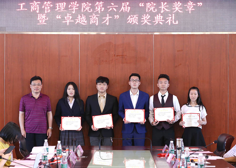 随后,工商学院院长柳学信为院长奖章获得者颁奖。他谈到,是学生让学院更加丰富,让教师更加精彩。为此学院积极进行人才培养模式改革,最早在全校进行大类招生试点,实现厚基础、宽口径“T字型”全才,通过实施导师制等为学生成长搭建平台。希望同学们做一个有思想的人,培养独立思考、评判性思考的能力,找到自己的人生价值,让自己成为“WHOLE PERSON”,与祖国共奋进。