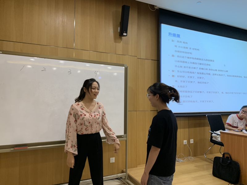 游戏继续进行,在“传声筒”环节,每组6名代表分别演出了影视剧中的搞笑片段来实现台词的传递,台上“演员”绞尽脑汁,台下“观众”鼓掌叫好,整个活动被推向高潮,报告厅内爆笑不断。