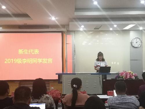 2019级硕士研究生李明代表新生在典礼上发言。她表示,考研使得新生们磨练了意识,坚定了信念。研究生生活来之不易,要珍惜良好的学习氛围,要做到明确目标、內强素质、外塑形象、博采众长、厚积薄发。在研究生新的起点上,她期待更多的机遇和挑战,期待结交各方英才,期待更为硕果累累的三年,收获别样精彩。