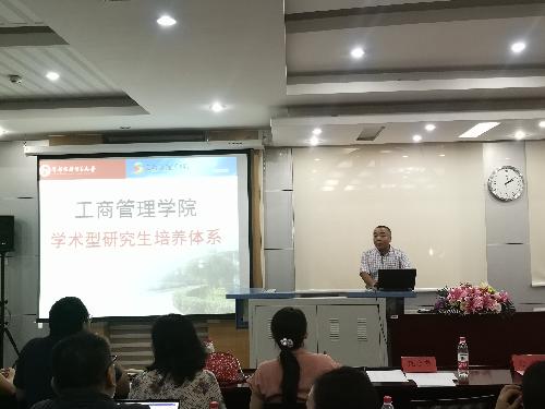 接下来,学院副院长范合君就学院研究生培养进行了解读。首先,范合君认为,研究生的主要任务是“研究”,“研”是细细地磨,“究”是探究事物的真理,反复搜寻。通过展示品牌活动和研究生培养的特色工作,范合君介绍道,学院多年来秉承着“重实博理,明道善用”的理念,贯彻“一体两翼”的培养体系,致力于培养具有高度社会责任感,具有扎实研究能力,能适应各种压力和变革环境的高级经营管理人才。最后,范合君讲到工商管理学院是离梦想更近的地方,期望每位同学能够在工商管理学院实现自己的梦想。