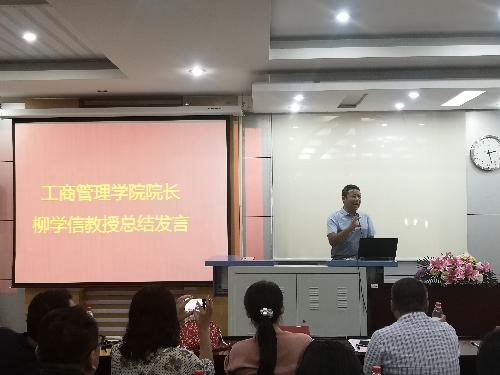 最后,院长柳学信进行总结发言。柳学信对新生的到来表示欢迎,并为同学们介绍了学院的优良师资力量以及学院的发展历程。学院在1979年便招收了第一届企业管理硕士研究生,2003年招收了第一届博士生,目前具有工商管理一级学科博士授权点资格以及工商管理博士后站,在2017年公布的第四轮学科评估中,工商管理学科进入B+行列,排位较为靠前。学院对老师的要求是“四好”——科研好、教学好、实践好、品德好,期望同学们可以积极主动与老师交流,努力学习,祝福同学们在导师和学院的关怀下,自信满满地走出工商管理学院,成为国家的栋梁之才。