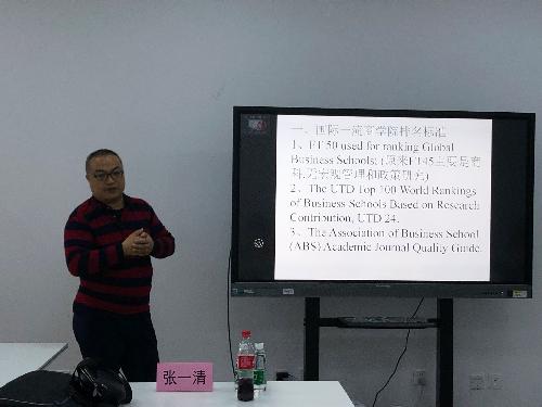 讲座开始,张老师分享了国际一流商学院排名标准、经济学和管理学的期刊划分排名,并讲述了自己发表期刊的体会:只要理论与方法有创新,或是用科学的方法创新地解决了经济管理的实际问题,就可以在SSCI/SCI国际主流期刊上发表。
