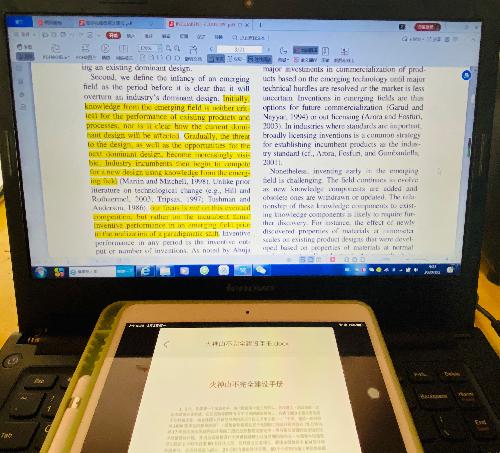 停课不停学,科研不止步。处理好班级健康上报工作之后,学习任务随之提上日程。作为一名研究生,最重要的任务就是科研。我的导师是孙喜副教授,研究方向是战略管理。“只有将主流理论与中国企业的实际相结合,才能真正理解中国的企业和经济发展”,这是导师经常教诲我们的话。只有做足了基础理论训练,才能够基于论文和讨论来更好地理解中国的工业。为了和老师一起更好地完成产业史课题,我秉持着“通过回到产业史的某些细节来理解产业创新发展的基本逻辑”的理念,每天上午,我都会阅读与半导体产业史相关的英文论文,整理半导体工业中的一体化企业与脱钩,以及这种产业结构变化对大学技术转移的影响,以更好地理解科学、技术与产业之间的关系。只有做好这种以应用为导向的基础研究,才能真正为中国企业的成长提供帮助。同时,我也会帮助导师整理研究材料、翻译英文论文,为了更顺利地理解拗口的英文论文,我养成了随手查阅资料的习惯。在学习之余坚持记忆英语单词,练习口语和听力,期望在阅读论文的过程中提高英语水平。“好记性不如烂笔头”,在阅读论文的过程中我也会随手记录文章的经典语句,完成读书笔记,同时帮助我积极思考论文内容,形成自己的思想体系,为日后自己的写作奠定基础。