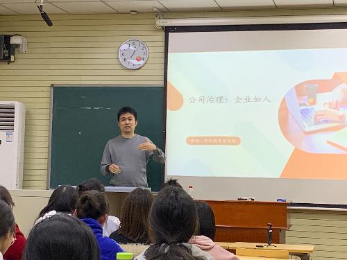 为加深公司治理知识的理解,提高本科生的综合素质水平,增强同学们的择业竞争力,2020年11月26日晚工商管理学院“公司治理”课程任课教师徐炜教授邀请北京磨铁文化公司董秘办曹祥玉经理(2011级工商管理班校友)、熙诚教育投资公司李越总经理(2007级工商管理实验班校友),在慎思楼和同学们围绕公司治理相关内容进行经验分享与交流活动。