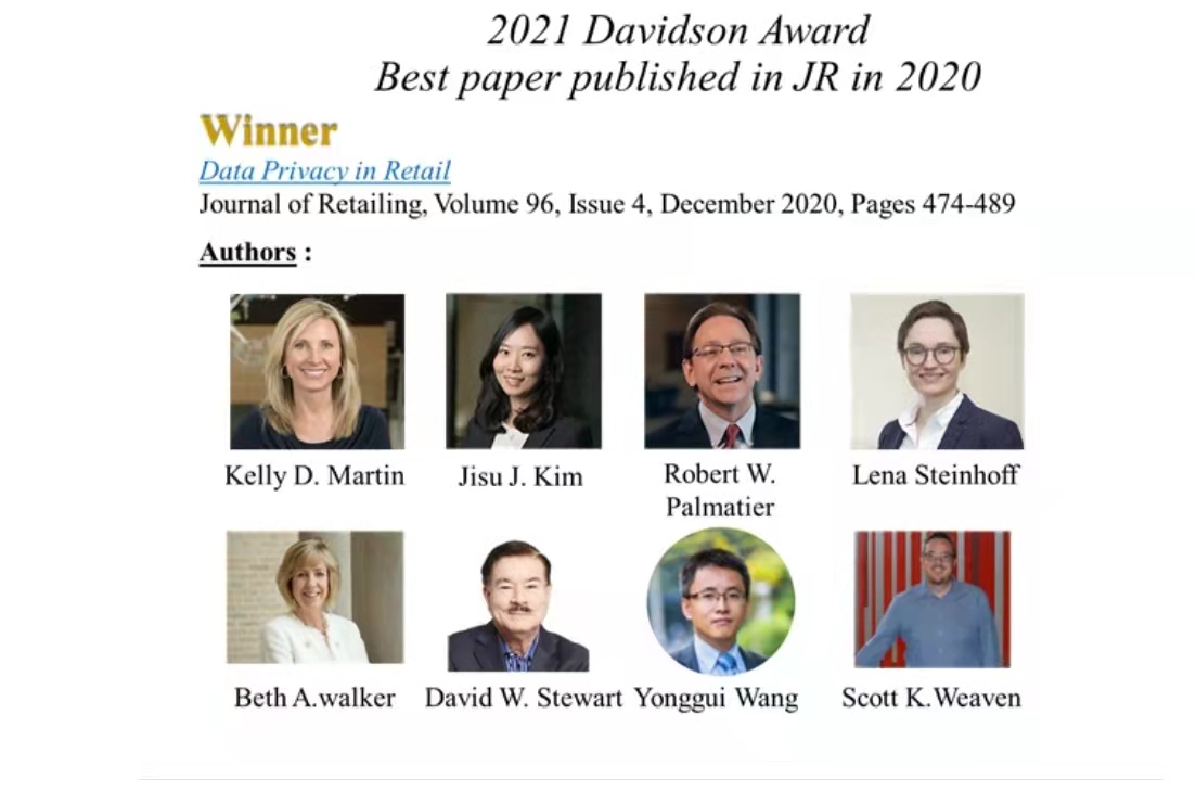 Davidson Award Best Paper是由市场营销领先期刊 Journal of Retailing 颁发,获得者为的上一年度最佳论文。