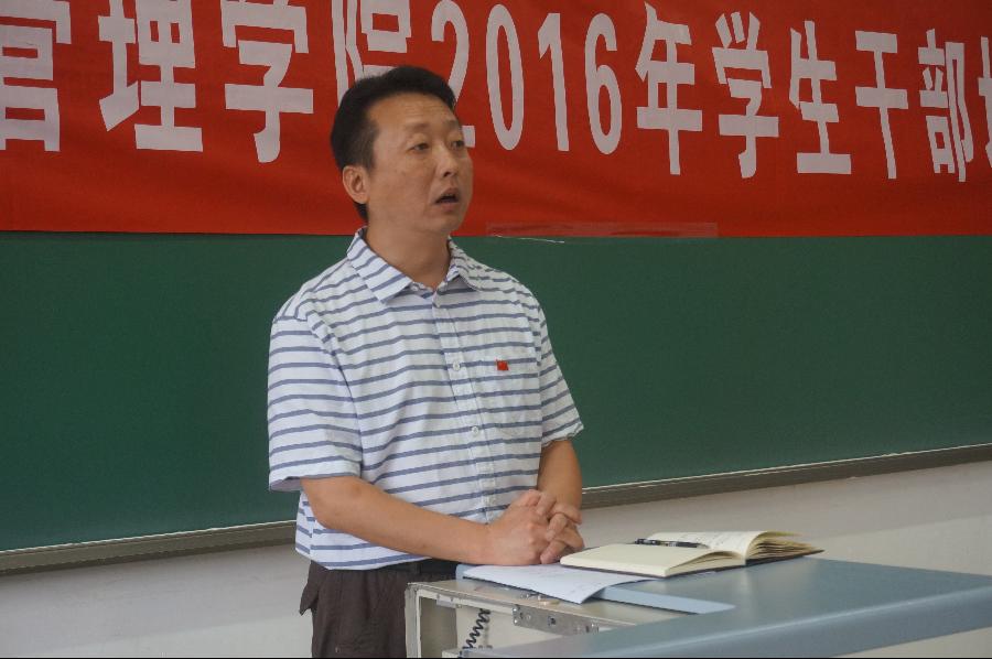 7月8日上午,工商管理学院召开了2016年学团组织学生干部培训会。学院党委书记金京虎,分团委书记潘镜宇,专职辅导员王硕、王璐及新一届学团组织全体学生干部参加了本次培训会。