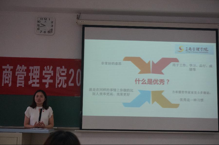 潘镜宇介绍本期学生干部培训的整体安排,并做“从优秀到卓越”为主题学生干部培训讲座。潘老师在培训中强调学生干部的角色定位:学生组织管理者、辅导员的好助手、同学的服务者。她嘱咐学生干部们牢记三种责任:自我的成长成才、团队服务的责任、学校和同学们的桥梁,发挥好学生组织自我管理、自我教育、自我服务的功能。她提出了学生干部需要具备的素质,如:工作热情,严于律己,做好表率,注重信息反馈等等,提醒各位学生干部工作思路要清晰,要时刻有工作责任感,同时要建立良好的同学关系,妥善处理工作与学习之间的关系。