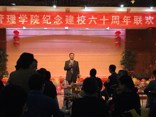 10月15日下午13:30,工商管理学院纪念建校六十周年联欢会在大学生活动中心二层举行。首都经济贸易大学校长助理戚聿东、工商学院院长柳学信、党委书记金京虎、副院长徐炜、院长助理关鑫、各系系主任、全体在职教师及各届返校校友等两百多人齐聚一堂,参加本次学院纪念联欢会。