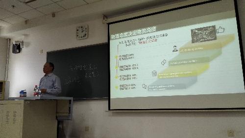 2016年10月18日下午,物流管理前沿专题讲座在我校博学楼622举行。讲座人为中国社科院经济学博士研究中心高级研究员、北京交通大学物流研究院客座教授、北京中经现代企业发展中心主任、首都经济贸易大学工商管理学院客座教授及研究生导师蒋坚蒋教授,2016级和2014级物流管理班的同学、物流管理系老师参加了讲座。