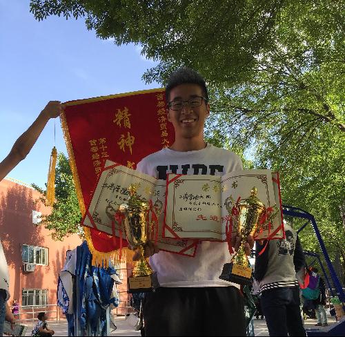 2015年春季运动会男子100米第三名,4*100米第三名,4*400米第四名的获奖者,曾任工商管理学院学生会体育部部长,14级工商管理二班班长。当如此多的头衔集中在一个人身上时,不禁勾起人了解他的欲望。今天,我们得到了这次机会,得以走近他——陈李鹏学长。