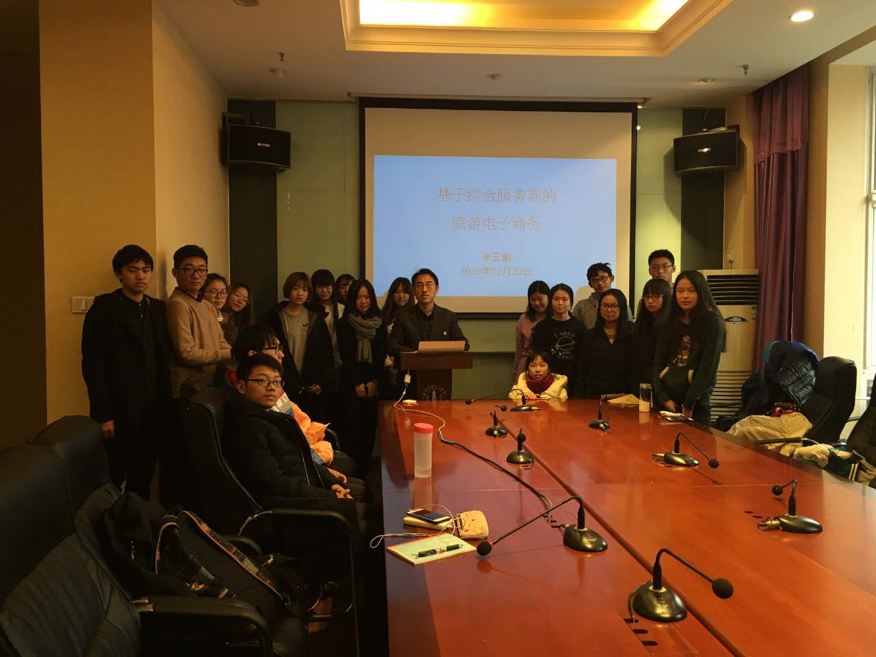 2016年11月29日下午,旅游管理系李云鹏老师做了《基于综合服务商的旅游电子商务》的公开学术讲座,2016级旅游管理班同学参加了讲座,整个讲座持续了一个半小时。