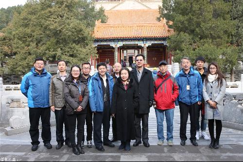 图3:蔡红教授与颐和园景区工作人员及研究生同学的工作照