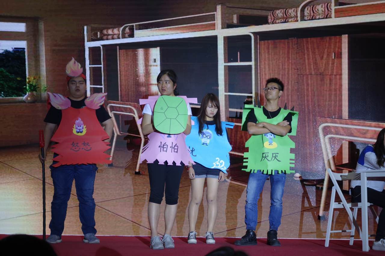 在一个多月的备战心理剧决赛的过程中,学生处心理中心王红、黄钰、工商管理学院学生专职辅导员王璐等老师从专业角度给予了悉心指导;绿萝花心灵成长工作坊社长王天扬、陈思、武佳全程带领学生排练;参演同学均为工商管理学院本科一年级学生,同学们不辞辛苦,做了大量的准备、排练、反复修改剧本。通过努力,现场参演同学表演出色,演出到位,五个情绪的设计创意十足,赢得现场观众及评委的热烈掌声。表演结束后,黄钰作为教师代表对剧本进行了解析。最终我校取得了优异的成绩。