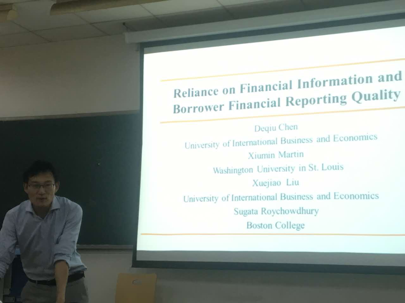 6月7日上午,我院与科研处、研究生院共同举办的“工商管理名家讲坛”第38讲在华侨A106教室成功举办。本次论坛邀请对外经贸大学国际商学院副院长、博士生导师陈德球教授做了题为“Reliance on Financial Information and Borrower Financial Reporting Quality”的学术报告,我院及国际经济管理学院部分教师和研究生参加了此次论坛,论坛由战略管理系青年教师王凯博士主持。
