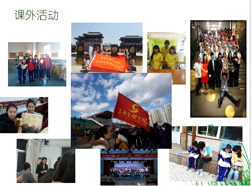 有人会说:这样的生活一定很无趣。其实不然,学习之余我也积极地参与到学院组织的各种活动中来。129合唱、运动会队列、蓝丝带志愿活动、新生辩论赛、暑期社会实践、打工子弟小学支教活动等等都有我活跃的身影,也正是这些活动潜移默化地培养了我的沟通与组织领导能力。除此之外,在社会工作方面我也努力提高着自己:大一时我担任学习实践部干事、大二时担任2014级国际市场营销班班级助理、用自己所学知识为学弟学妹们组织微积分串讲;大三时担任2015级电子商务班班导生,无论是学习还是生活方面,我总是尽自己最大努力去帮助大家解决难题。我用心做好每一份工作,用心对待身边每一个人,也收获了学弟学妹们对我满满的爱与信任。同时,也因为出色的工作被评为优秀学生干部,获得了社会工作奖学金。