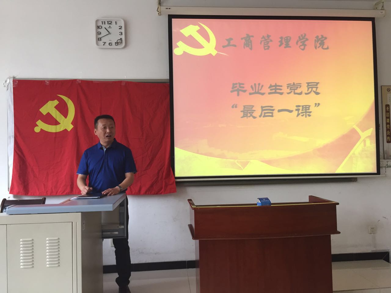 6月29日,工商管理学院在博学310教室开展了毕业生党员“最后一课”党员教育活动,由工商管理学院党委书记金京虎主讲,学院分团委书记兼党务秘书潘镜宇老师主持。