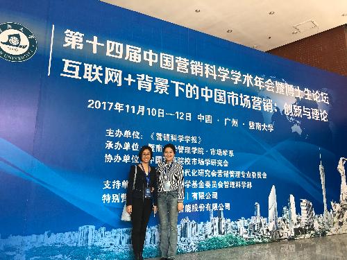 11月10日至12日,我院市场营销系青年教师李研和王紫薇在广州参加了“第十四届中国营销科学学术年会暨博士生论坛”,本次大会由《营销科学学报》主办,暨南大学管理学院市场学系承办,中国高校市场学研究会协办,国家自然科学基金委员会管理科学部支持。会议的主题为“互联网+背景下的中国市场营销:创新与理论”。本次会议邀请了国内外营销学界及相关学科的知名学者与会,一起探讨了当前市场营销学理论前沿、尤其是互联网+背景下的市场营销和市场热点问题,交流各自在营销领域的最新研究成果,整合优秀的学术资源,解决企业和管理部门面临的管理问题。