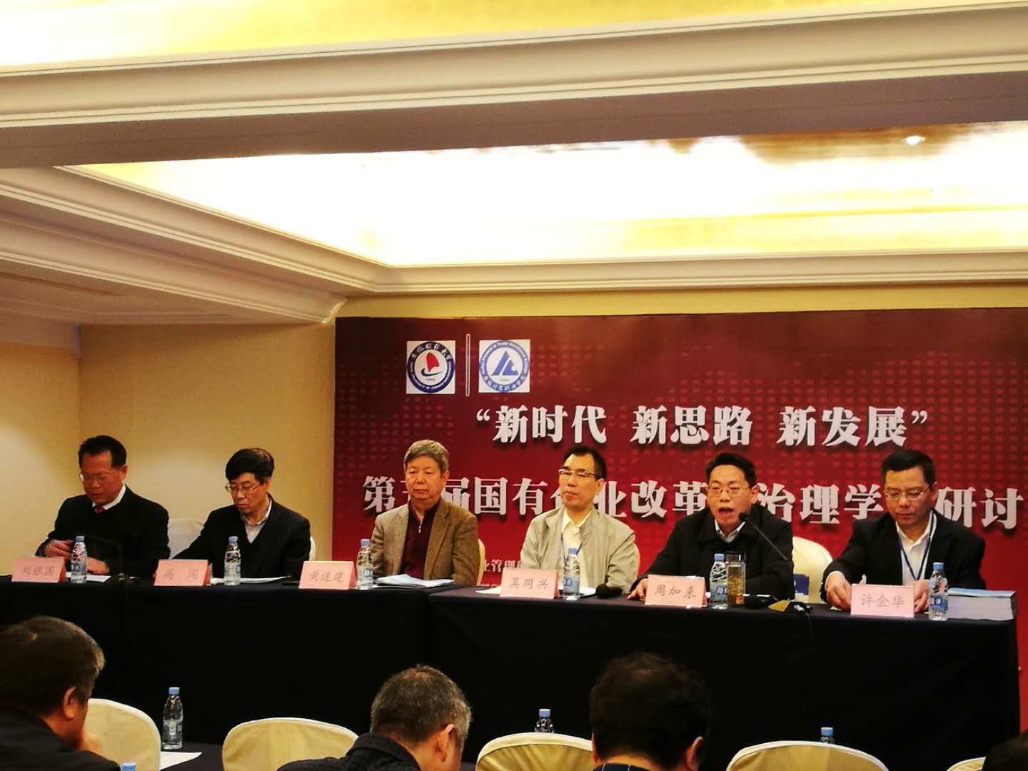 第一场“专家研讨”环节由经济管理出版社社长杨世伟研究员主持。中国企业联合会刘兴国研究员,天津财经大学商学院院长彭正银教授,中央财经大学崔新建教授,安徽省社科院副院长杨俊龙教授,吉林大学中国国有经济研究中心副主任汤吉军教授,南开大学中国公司治理研究院副院长马连福教授分别围绕会议主题作了《国企治理提升与党组织的嵌入》《“资本为王”还是“智本为先”——基于关系视角的分析》《民营企业现代企业制度建设及其竞争力》《混合所有制相关问题研究》《国家所有权与国有企业治理》《国有企业混改进程中的公司治理问题研究》的精彩演讲。